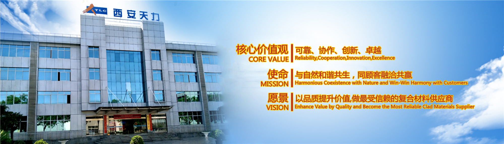 西安天力金屬?gòu)?fù)合材料股份有限公司是西北有色金屬研究院(集團(tuán))產(chǎn)業(yè)化上市公司“西部材料”控股的獨(dú)立法人公司,是專業(yè)從事層狀金屬?gòu)?fù)合材料研究及生產(chǎn)的高新技術(shù)企業(yè),成立于2003年12月25日,位于西安經(jīng)濟(jì)技術(shù)開發(fā)區(qū)涇渭工業(yè)園,注冊(cè)資本10895萬股,擁有生產(chǎn)廠房23000余平米,各類生產(chǎn)設(shè)備200余臺(tái)套及兩塊條件優(yōu)越的爆炸復(fù)合場(chǎng)地,形成年產(chǎn)25000噸層狀復(fù)合材料的生產(chǎn)加工能力……